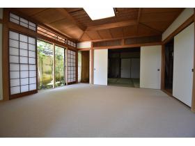 純和風建築の住宅です。広い庭があり風情がございます。庭の植木は年に一度オーナー様により剪定が入ります。1階奥には茶室もございます。
